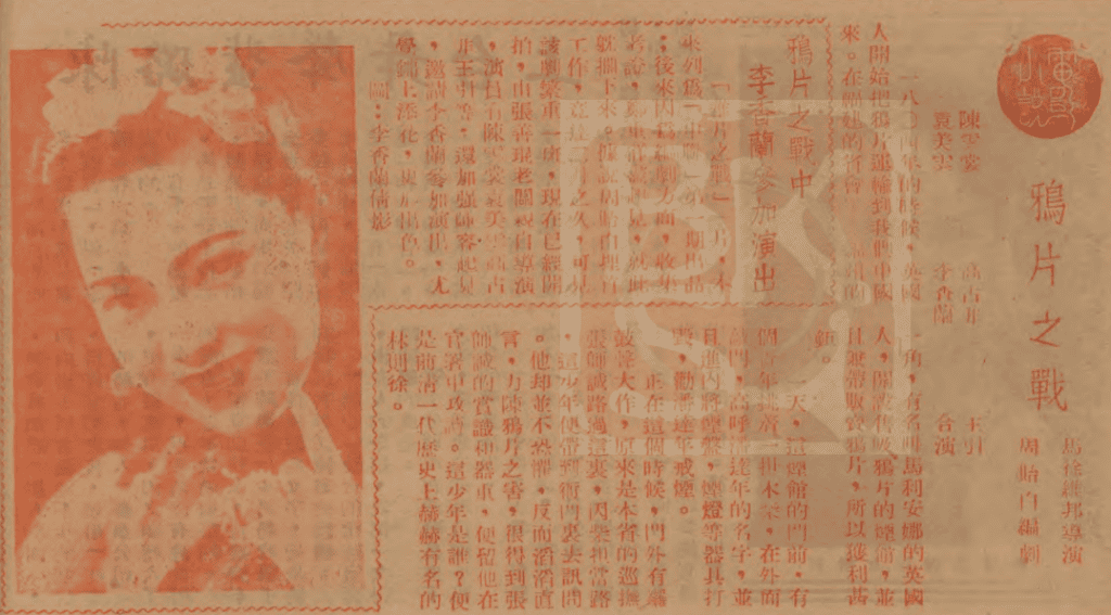 作爲中日友好的象徵,李香蘭經常飾演不抵觸日本管制,具有中國民族主義色彩的角色,如在鴉片戰爭期間,推廣禁烟的民間女性,此種角色將日本人和中國人拉在同一陣營,共同對抗西方帝國主義:
