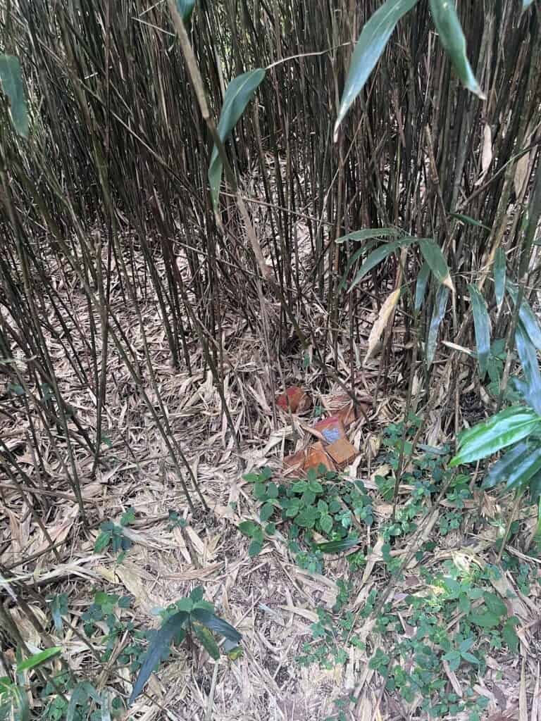 圖1陽明山採筍人留下給土地公還有好兄弟的買路財/作者自攝