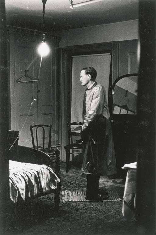 這是 攝影師 Diane Arbus 的 “在旅館房間裡倒著的男人”。