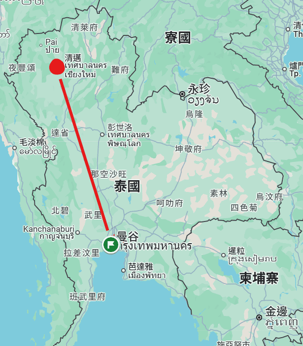清邁 距 曼谷 約 690 公里,開車的話約需 10-11 小時,距離蠻遠的。