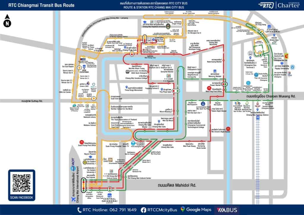 近幾年泰國官方為了促進觀光,在清邁建設了 RTC city Bus, 目前共有 紅、黃、綠 3 條線,行經 清邁國際機場 及 清邁市區各大景點。