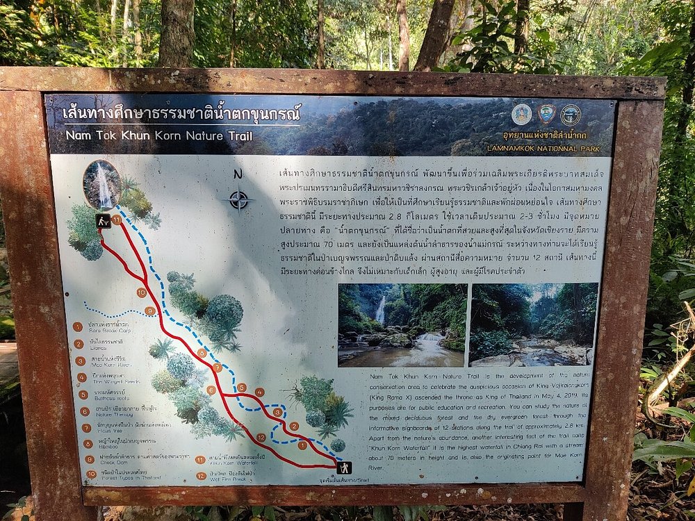 坤孔瀑布位於清萊 Mae Kon, Doi Chang,高達 70 公尺,是清萊最壯觀的瀑布之一。通往瀑布的步道沿途森林茂密,自然景觀豐富,從管理站步行約 1,400 公尺 (約 30 分鐘) 可抵達。