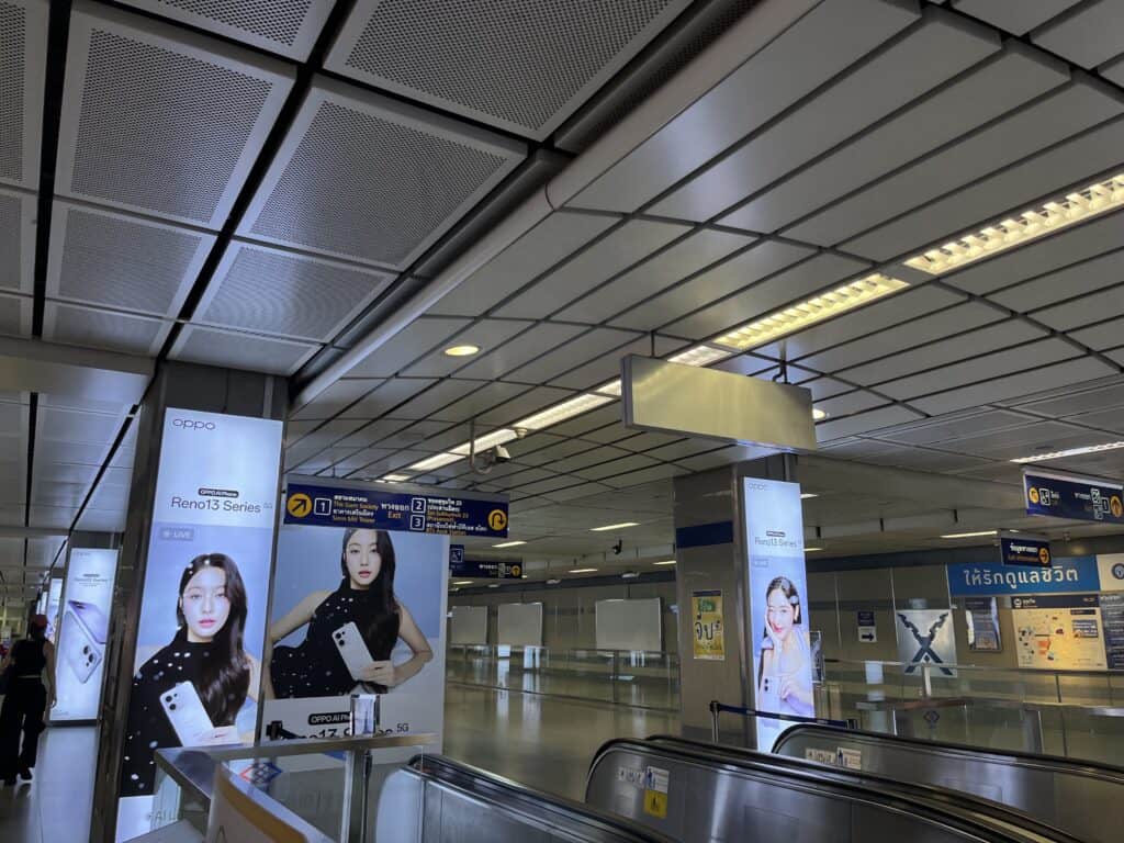 >>個人比較推薦搭到 Sukhumvit 站,因為這站也會貼很多明星海報,說不定就剛好遇到自己喜歡的明星貼在牆上 XD。而且附近還有一間蠻好逛的百貨公司 Terminal 21,大加分~