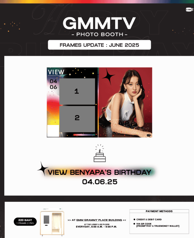 GMMTV 大廳 和 地下層B2 有 BOOTH 拍貼機,主題會隨當期活動變換,譬如藝人生日、ON檔戲的主角等。Booth 拍貼機在 gmm 大樓的樓下,可以直接前往不用換證。