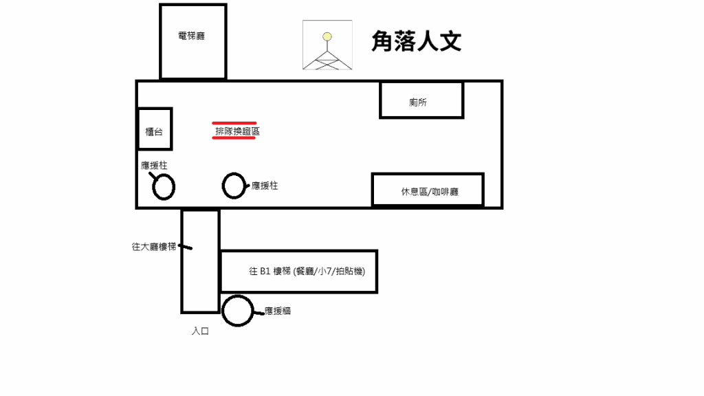 大家可以參考上面的示意圖,拍貼機在大廳和地下室,地下室從入口右側的樓梯下樓一直走就能看到喽,通常在 7-ELEVEN 正對面~
