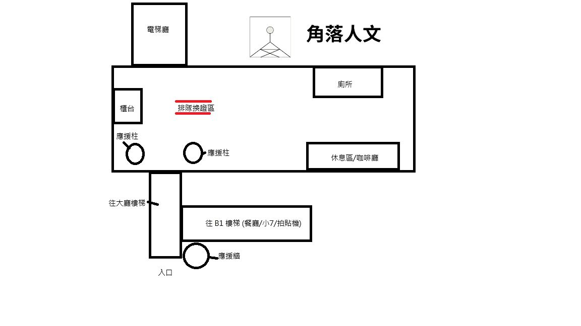 到了 GMM 大樓後,面對大樓上樓梯直走就會看到左手邊有一個櫃台。櫃台對面有一條紅龍,你會看到有蠻多人在紅龍裡面排隊。他們都是粉絲在等待換證喔!因此只要跟著排隊就好~