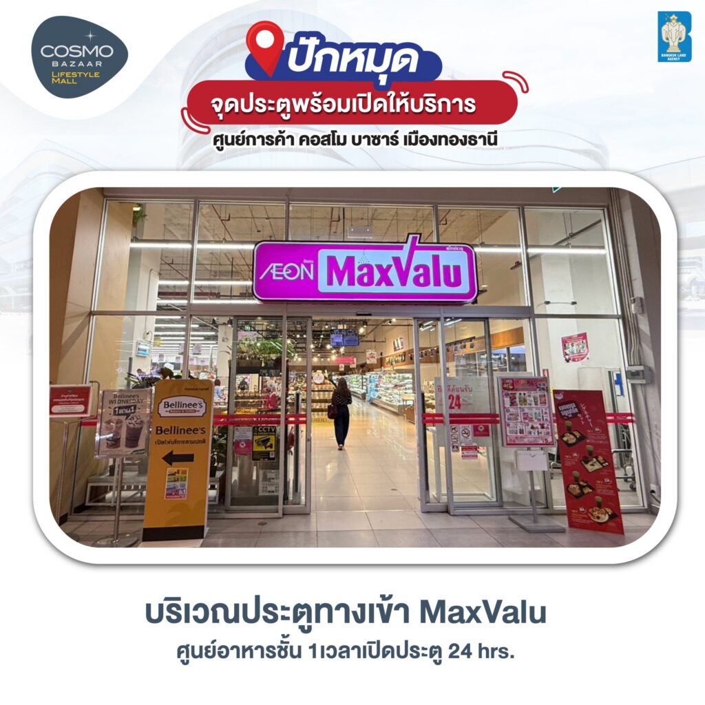 在 COSMO Bazaar 一樓 Maxvalu 超市旁邊,營業時間為 10:00 – 22:00。