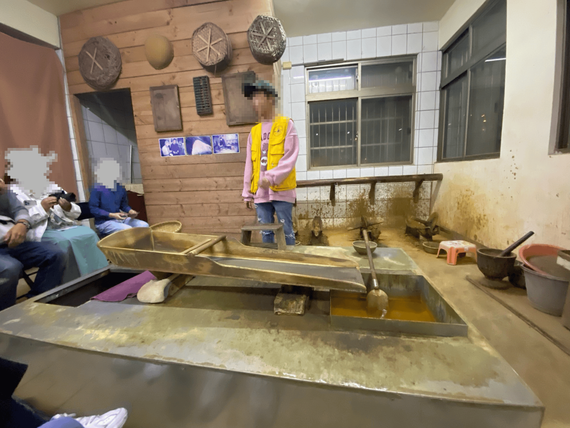 導覽員從台灣荷西時期開始講起,接著講到九份金礦其實是清領時期劉銘傳建設 基隆到台北段 鐵路時,挖鐵路的工人在基隆河邊洗滌食器時發現的。當時它們在河中發現了少許金沙,進而循溪溯源找到了九份金礦脈。