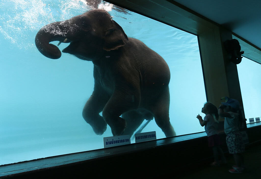 在綠山動物園,每天固定時間園方會讓大象下水運動,因此遊客也能看到大象游泳的樣子喔!