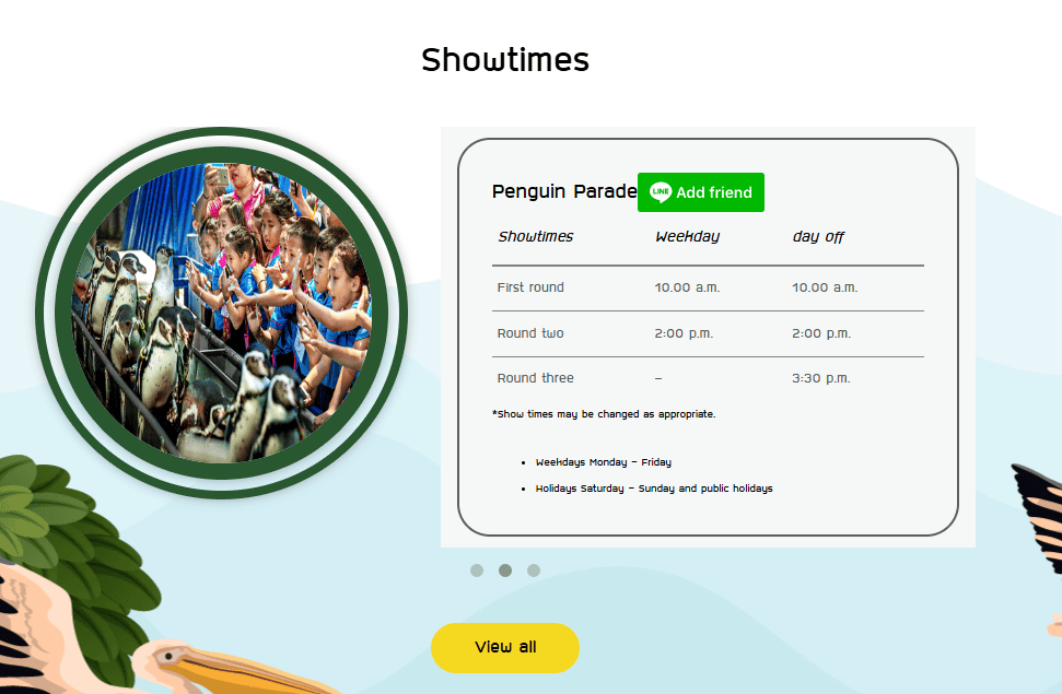 - 週末: 11:00, 12:30, 14:30