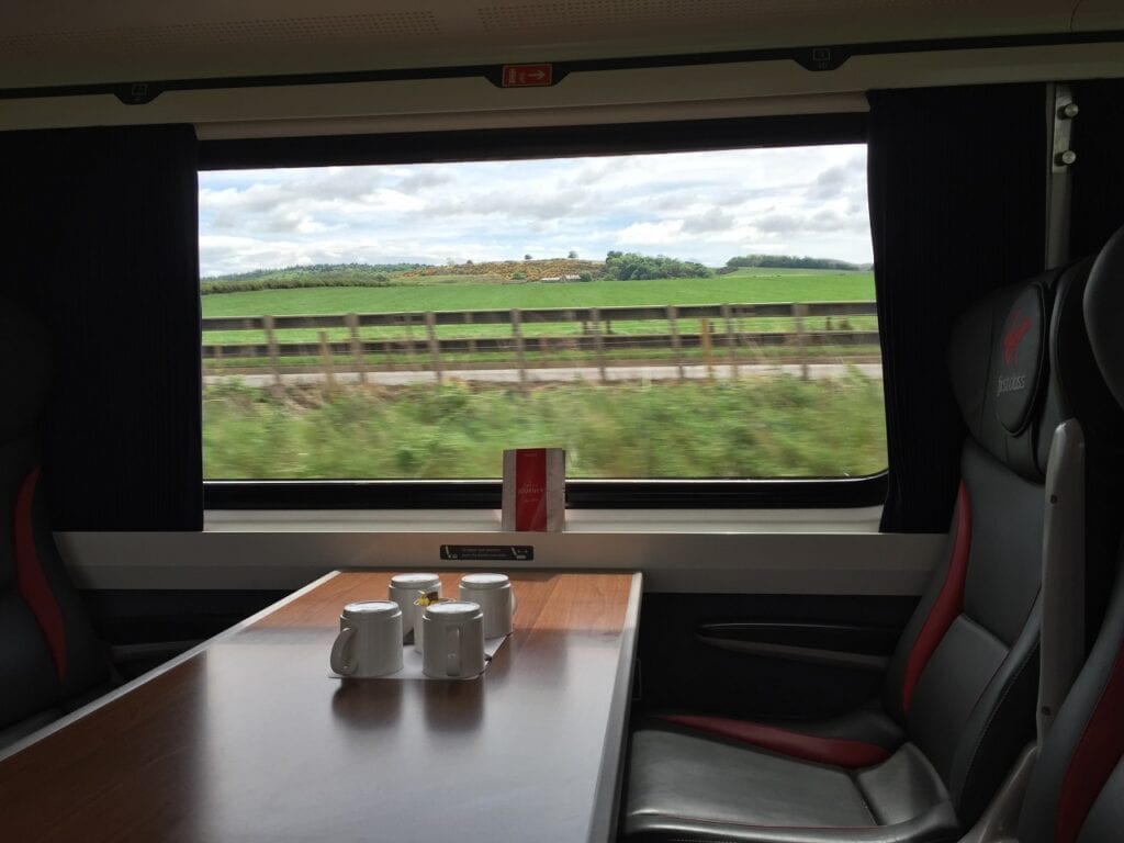 第一次去愛丁堡就是搭火車,我個人很喜歡歐洲火車的原因之一,就是它有附桌子的座位 (訂位置的話,會建議選有桌子的座位)。