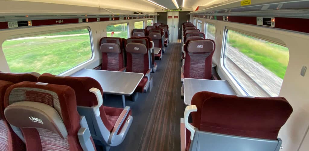 座位通常會附插座,能在車上使用筆電、手機或平板,但歐洲使用 3C 用品還是要特別注意,不要讓 3C 離開你的視線,而且也要對經過的人有防備心。很多時候真的經過的人隨手一拿,你的東西就會不見~