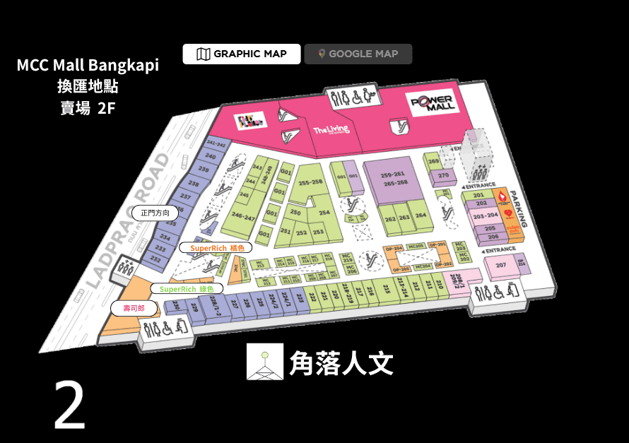 在 MCC Mall Bangkapi 2樓 有兩間 SuperRich (一間綠色,一間橘色),匯率都很不錯,兩間距離很近,換匯的時候可以比較一下當下匯率+排隊人數 選擇要去哪家換~