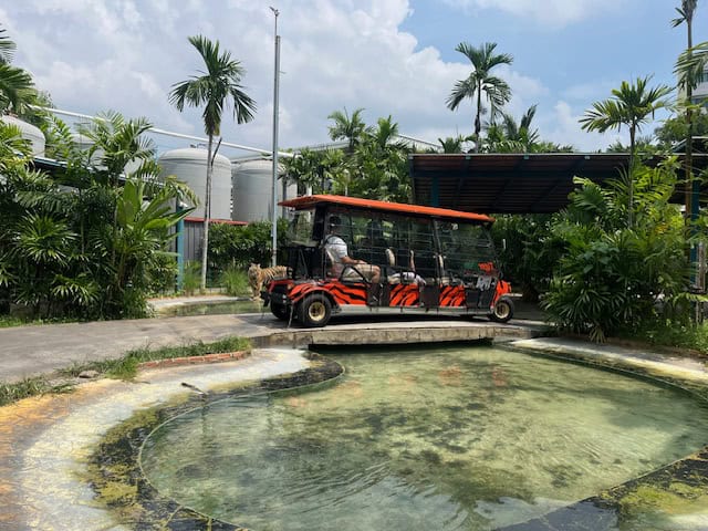 購買這個票種可以乘坐類似高爾夫球車的觀光車,穿梭於約 3 -4 個開放式老虎飼育區。遊客可以近距離看到老虎。而且司機會特別挑選距離老虎比較近的地方停車,給遊客拍照。
