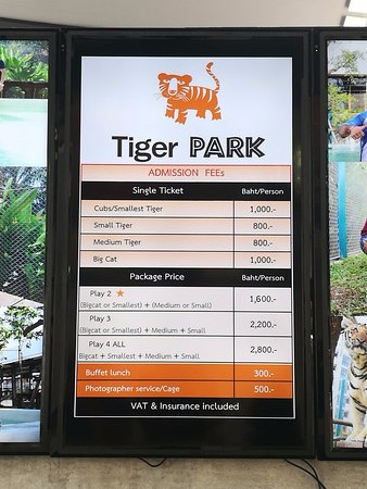 園區提供的參觀體驗主要可以分為兩種,搭乘叢林車進開放式的老虎園區 及 和體型不同的老虎合照。票價簡述如下: