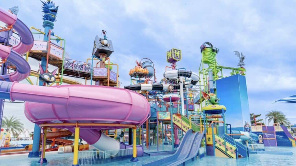 比較像環球影城、迪士尼樂園 那樣依 電影IP 分成不同的戲水主題區。此外來有衝浪體驗、迷你高爾夫 和 卡丁車 等遊樂設施。