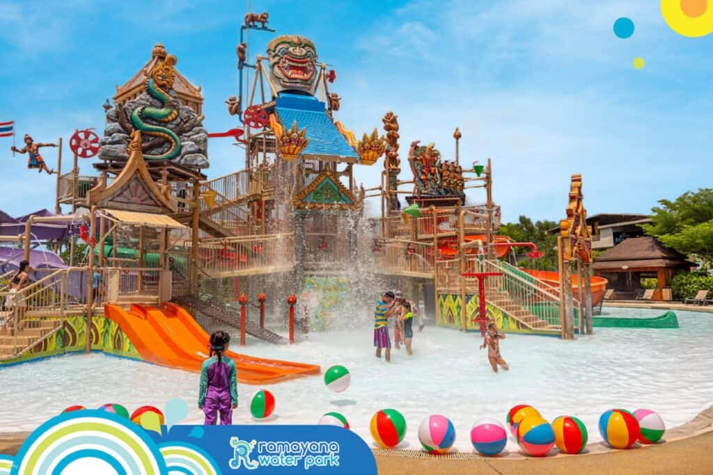 羅摩衍那水上樂園 (Ramayana Water Park) 以 泰國古代神話 為主題,分成四個區域,遊樂園共有 26 座滑道、4 個兒童區、3 座泳池和一條漂漂河,加起來大概有 50 項活動可以玩。