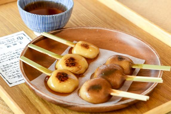 両棒餅 是仙巖園的特色美食,據說是 江戶時期 薩摩武士 喜歡的點心。因為有寫在官方旅遊 DM 上所以特別點來吃。吃起來跟糯米糰子很像,但附了一種特色沾醬,有醬油的淡淡的香氣,還不錯吃。
