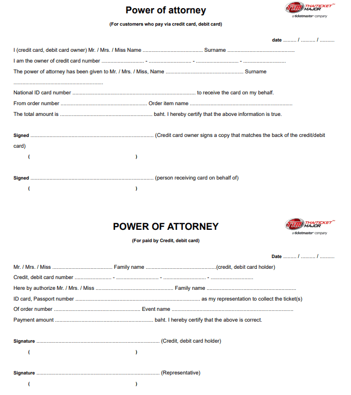 - Power of attorney (POA) : POA 通常會在購票證明的最後一頁,印出並填妥所有欄位
