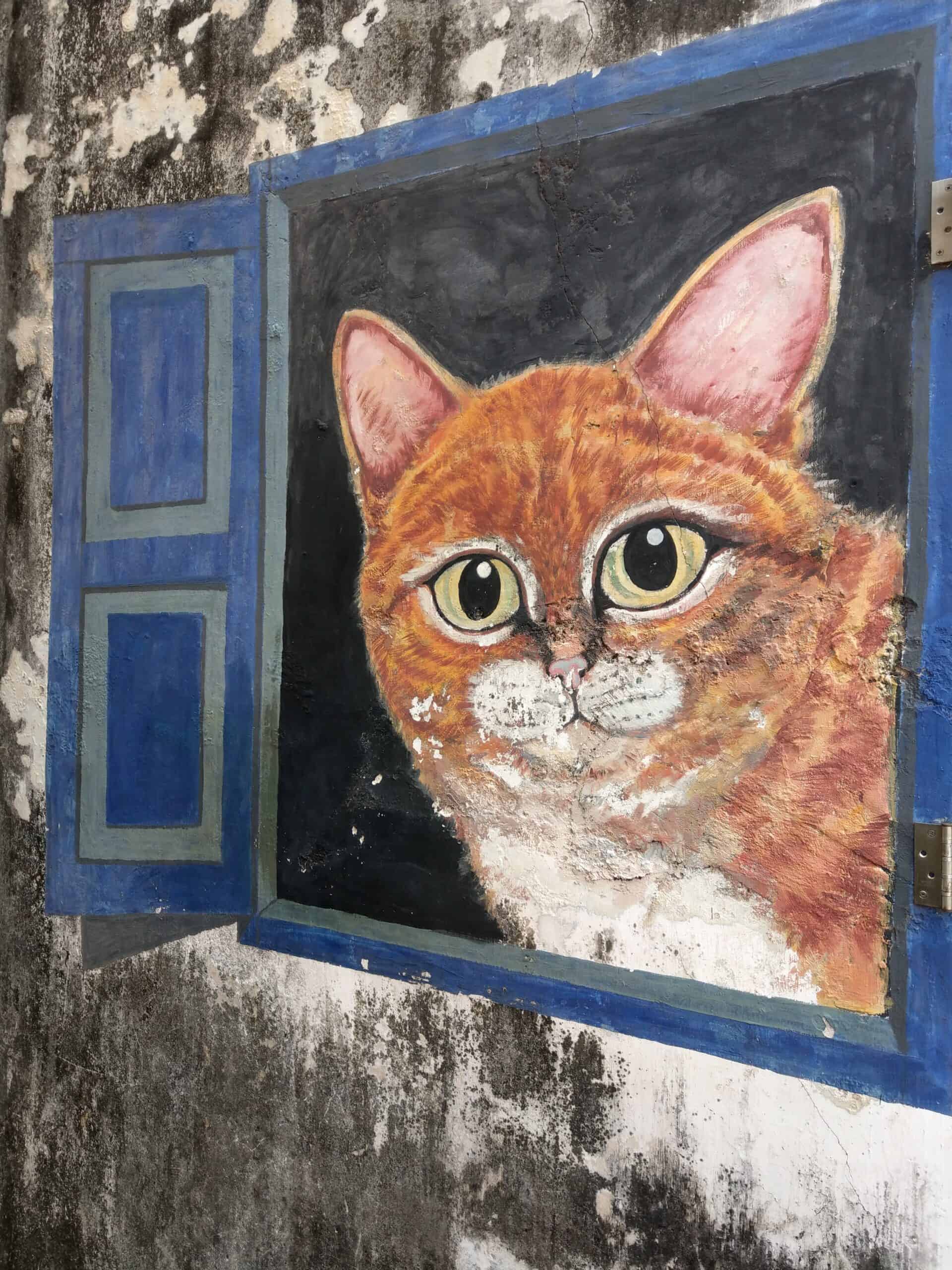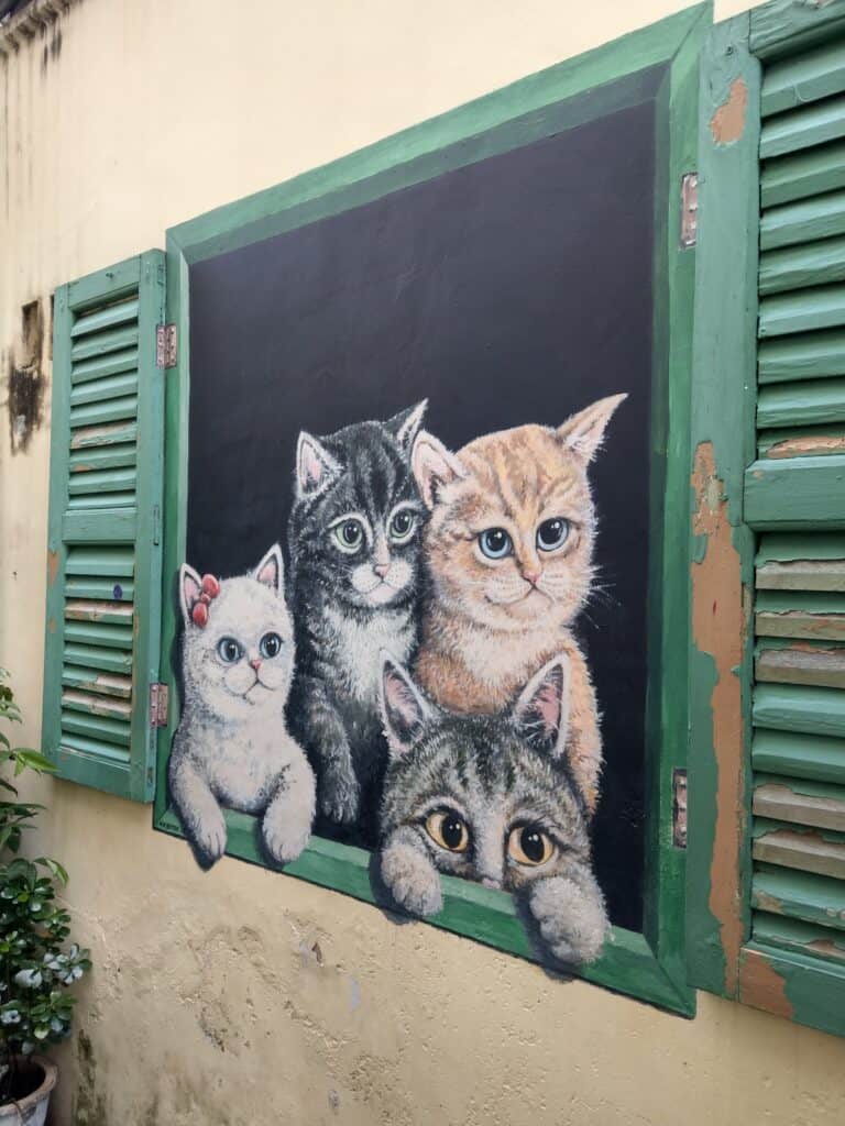 壁畫街離姓氏橋不遠,然後壁畫街沿路都是特色小店,時不時能在牆上發現可愛的壁畫,然後我看到了好多貓咪的壁畫。