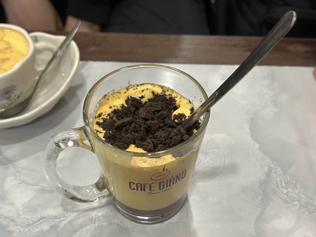 1964年時,因為越戰造成物資缺乏,所以Cafe Giảng的創辦人便想出用雞蛋取代牛奶的奶泡,加上咖啡,便成為極具越南特色的蛋咖啡(Cà Phê Trứng, Egg Coffee)。