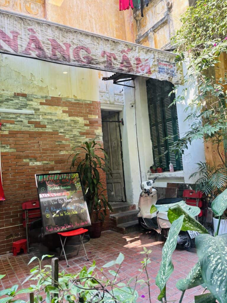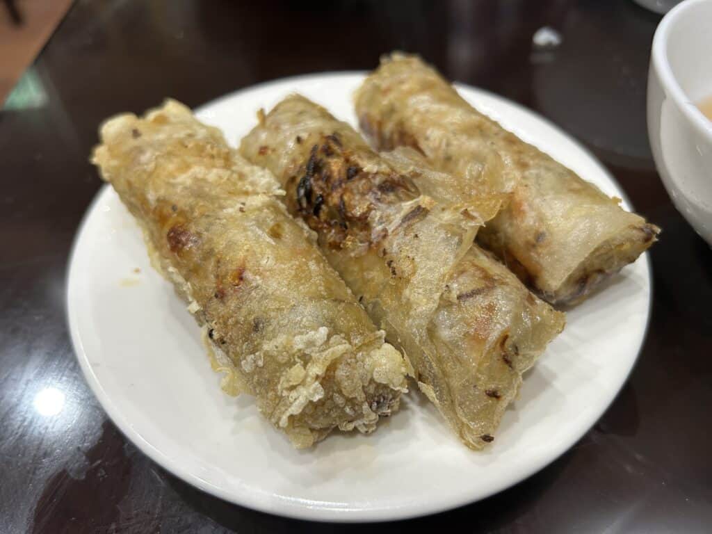 恰好是在這裡用餐時,一個德國家庭由地陪來這裡用餐,才發現原來有這種素食街頭美食和河內故事的行程。我覺得滿有意思的,因為除了美食本身,還可以知道美食背後的故事,而遇到這一家人,地陪還在用餐時傳授筷子使用的技巧。