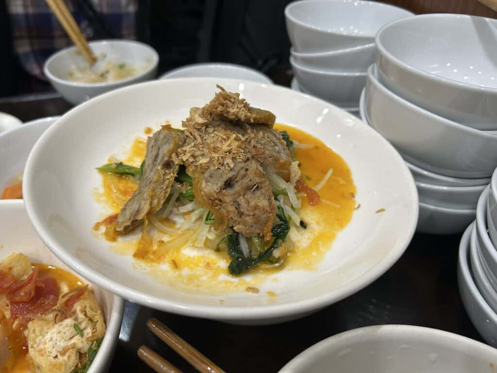 然後我就點到了這種,跟自己以為的湯麵好像不太一樣。其實就是乾的河粉(Bún chả, 英文會是Noodle,後來發現湯麵的話英文會用Noodle Soup)