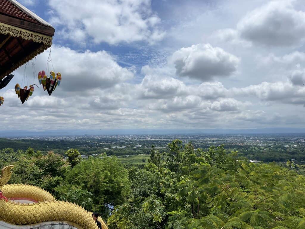 因來康寺位於山上,所以在這裡可以俯瞰被青山綠從環繞的清邁市區,從這裡看到清邁市景,給人遼闊、清幽,適合度假的感覺!