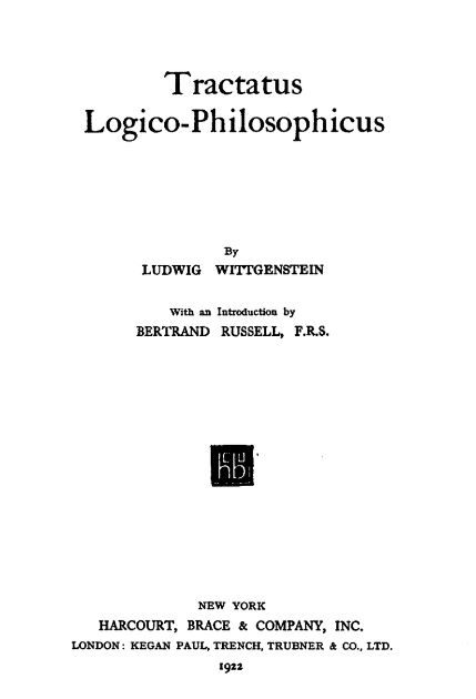 - 前期代表作《邏輯哲學論》